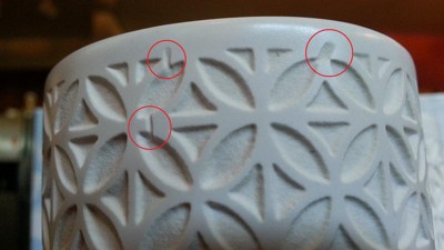 The design is quite nice, but the quality and actual execution is sub-par. I ordered 2 of these, and they aren't even the same height. The spacing between the edge of the pattern and the bottom and top edges of the tumbler are uneven and inconsistent between the two, and there are little chips in the pattern itself. On the shorter tumbler, the pattern doesn't line up correctly, and it also seems unevenly applied as well: certain depressions in the pattern are shallower than the rest. Granted, it's not awful all over on the entire thing, but it's the little details that count, especially at this price point. This could have been a simple but nice piece, but the quality control and manufacturing are completely lacking and nowhere near my expectations. These are going back.