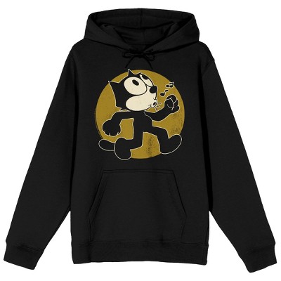 Celebrate your favorite cartoon characters with this adult black Felix long sleeve hooded sweatshirt. Featuring Felix whistling inside a red circle, this hoodie adds playful style to your wardrobe. Crafted from a cotton and polyester blend, it delivers soft, comfortable wear while the adjustable hood provides a customizable fit. For easy care, machine wash it on cold with like colors and tumble dry on low heat.