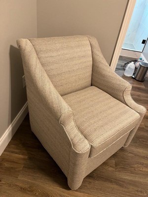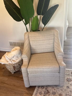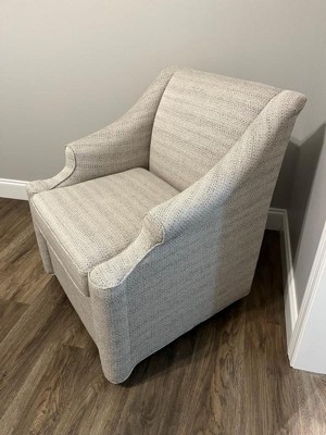 [This review was collected as part of a promotion.] I recieved this poduct from influensters. This is a accent chair that swivels and rocks. It’s very comfortable and the material is high quality. Would recommend a fabric spray to help keep the stains and oil transfers to a minimum with it being a lighter color. The only issue is that it is a small chair so someone taller than 6’3” may feel too big in it but that’s not an issue for our family. All around great swivel chair.