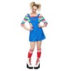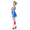If you had to think one single scary film that represents Halloween, it would without a doubt be Child's Play. Chucky plays the role of the terrifying, deadly doll who makes your skin crawl, every single time he's on screen. You can take on the part of this villain, but a slightly less scary version wearing our Womens Chucky Costume. It's a great outfit choice for Halloween parties and nights out, adding a creepy but glamorous finish to the popular character's look. The Womens Chucky Costume consists of cute, bright blue, pinafore-style dress, featuring print detailing all over. The dress also comes with a striped off the shoulder, long-sleeved crop top to be worn underneath. You'll look like the notorious evil doll in no time in the number! Just be sure to create a wacky hair style, splash on some fake blood and nail that creepy walk this Halloween. Now, who's ready to play?