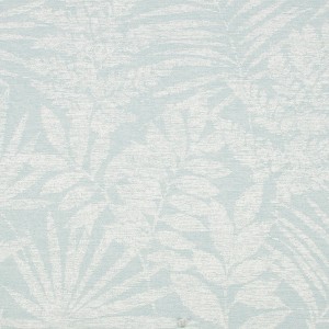 A full roll of this product is 20.5 inches wide and 396 inches long. A full roll can cover up to 56 square feet depending on the design match and pattern repeat. A sample of this product is 8 inches by 11 inches. Adding a subtle design to your walls to create depth and warmth could not be easier with this tonal grasscloth fern design. The silhouetted leaf print is the perfect way to add color and texture to your room creating a relaxing atmosphere. This color way features white leaves on a duck egg blue background. Offers a smooth, untextured finish. Offset match with a 25.2 inch pattern repeat.