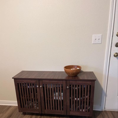 Fernanda Modern and Contemporary 3-Door Wooden Entryway Shoes Storage Wide Cabinet - Oak Brown - Baxton Studio: 10 Fixed Shelves, Hardwood & MDF