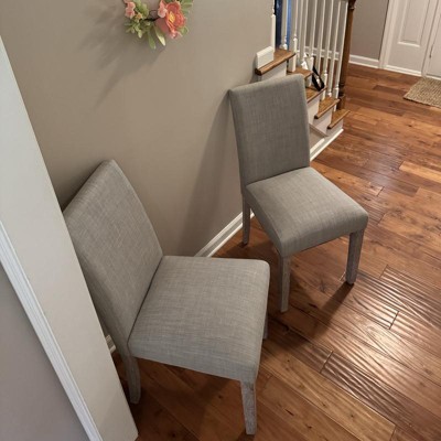[This review was collected as part of a promotion.] These are basic, upholstered dining room chairs with no frills. They are nice looking and would go with lots of different decor. It honestly took me about 2 hours to put them together though which was very frustrating. The holes did not align perfectly so it took a while to be able to get the screws to all fit in. However, the instruction book was very clear and easy to follow. Overall, these chairs are fine. I received an incentive to write this review.