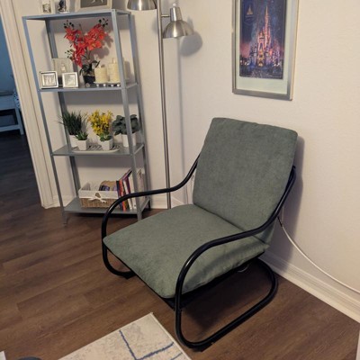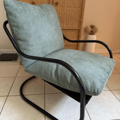 [This review was collected as part of a promotion.] The FERPIT Modern Curved Accent Chair definitely has style—the smooth arc-shaped metal frame gives it a really nice modern look, the moss green cushions are gorgeous and add a fresh, clean vibe to the room. It was pretty easy to assemble; it took me about 30 minutes and the directions were clear and simple to follow. That said, I was a bit disappointed with the comfort level. The cushions looked thick and plush in the pictures, but in reality, they’re much flatter than expected. You can actually feel the hard frame underneath when you sit down, which makes it hard to relax in for more than a few minutes. This chair is definitely more about looks than lounging. If you're looking for a stylish accent piece to complete a room, this could be a good fit. But if you’re after comfort or a cozy reading chair, I’d keep looking. I received an incentive to write this review.