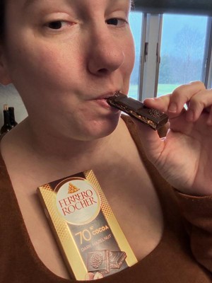 [This review was collected as part of a promotion.] I received the Ferrero Rocher 70% Cocoa Dark Hazelnut Bar from Influenster for free in exchange for my honest review. This chocolate bar is absolutely delicious! I love that it’s more affordable than some higher end chocolate bars but just as good if not better. The 70% dark chocolate is mildly sweet, but not as cloyingly sweet as milk chocolate which makes this bar very enjoyable. I love the crunch of hazelnut in the filling and would frankly love even more hazelnut, but that’s just a personal preference. I appreciate that this bar breaks into little squares so that I feel content having one square after dinner for a very small treat. It definitely satisfies my sweet tooth! But being honest, there were some nights I needed more than one square because dang it’s good. I highly recommend this chocolate hazelnut bar and plan on buying it again!