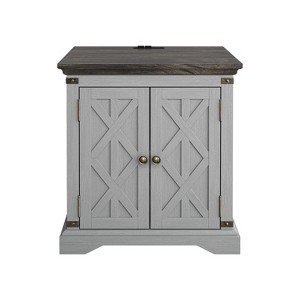 Festivo 2 Door Side Table Gray: Farmhouse Style, Built-in USB/AC Outlets, Adjustable Shelf