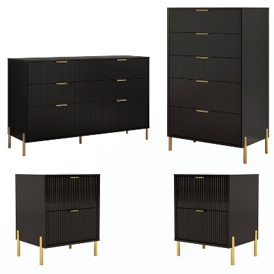 Elevate your bedroom with our versatile furniture collection, designed to seamlessly blend into various decor styles. This comprehensive bedroom set includes a mix of dressers and nightstands, offering ample storage and stylish functionality. With clean lines and a modern design, each piece adds a cohesive and sophisticated look to your bedroom, meeting all your organization needs. Transform your space with this elegant and practical bedroom set.