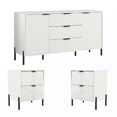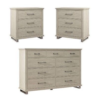 Includes: Anti-Tip Anchoring Hardware, 2 Nightstands, 1 Horizontal Dresser (no mirror)