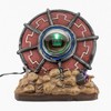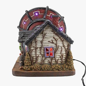 Add a twist of extraterrestrial humor to your Halloween setup with No Landing Zone. This LED-lit porcelain village scene captures the moment an alien ship crashes into a home—while two aliens argue and the unbothered homeowner casually drinks his coffee. The scene is filled with whimsical touches, like the loyal dog going about his day beside the wreckage. With its colorful lighting and surreal details, this piece brings personality and unexpected charm to your holiday display, sparking both curiosity and laughter.