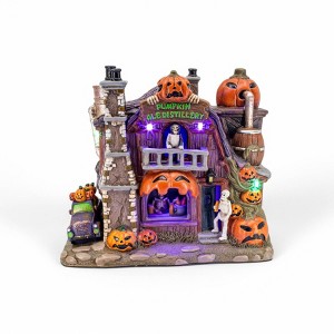 Raise a ghostly glass at the Pumpkin Ale Distillery, where bubbling brews and eerie lights set the mood for Halloween fun. Glowing jack-o’-lanterns and haunting sound effects create a spooky yet festive scene, while detailed porcelain craftsmanship brings the building to life. With an easy-to-use 4-way power switch and included AC adapter, setup is simple and seamless. Whether you're building a village or spotlighting a single piece, this distillery adds flavor, fright, and festive charm to your Halloween décor.