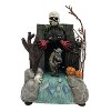 Add a frightful surprise to your Halloween village with the Animated Drainpipe Ghoul. This haunting piece comes to life as a ghoul suddenly lunges from the shadows, then retreats with eerie music and glowing LED lights setting the mood. Crafted from durable polyresin with carefully sculpted detail, it’s designed to thrill for seasons to come. No assembly is needed—just plug in the included AC adapter, place it in your display, and let this creepy character steal the spotlight. It's the perfect mix of fun and fright for any Halloween enthusiast.