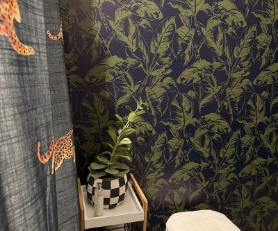 Bring a touch of greenery to your indoors with this Ficus Navy Wallpaper from Threshold™. This wallpaper features a beautiful pattern of ficus plant leaves on a navy backdrop, perfect for livening up a kitchen, bathroom, or living room. Boasting a self-adhesive back, this wallpaper is easy to apply for a mess-free experience. There's enough to cover 27.5 square feet of space, and it boasts a vinyl finish that's easy to keep clean.