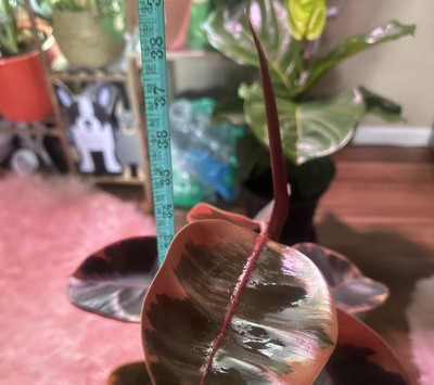 Whilst I’m pretty sure that I received a ruby ficus, although I am not sure that I would consider it “robust”. At least it is a ruby color ficus, unlike some of the other purchasers that left reviews on here. Positives: I would tit arrived in a good size tall box maybe 48”x 6”x 6”. Negative: After opening the box I noticed it appears to be in only a 4” grower’s pot that was way too small for it. The roots were coming out the top of the dirt and out of the pot. Some of the leaves on the bottom had been damaged and had some kind of ick on them. I have to repot right away and prune off at least 8 leaves. Positive: It is very tall and it is red/pink whatever color you wanna call it. The pictures I have attached for review are of the plant after it was repotted leaves off of it . I tried to show a picture with a tape measure to show how tall it was. The tape measure tucked right up underneath the bottom of the pot so the plant itself from bottom of the pot to the tip (im assuming/it looks like it’s new leaf about to unfold) is about 39 inches.) At the bottom, it asked if I would recommend this to another person and it only has the options of definitely yes or no not at all ; well it’s a yes I recommend them but it’s a hit or miss on whether or not you’ll get a good plan apparently, according to other reviews, I had a good experience for the most part.