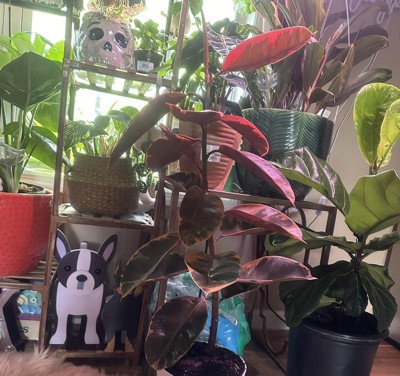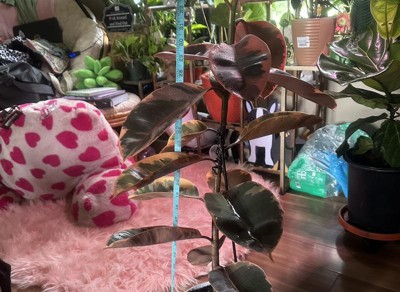 I have been waning this Ruby Rubber Plant since I saw at Armstrong last Feb 2020. But this one I just got today was nothing like its pictured. Mine came with half soil but worse thing is under leaves had bugs. I spent more time cleaning leaves and hoping there aren't any bugs. I lost 3 leaves that were damaged the rest were bent. The plant seems to be fit in 6 inch container then a quart because roots are so tiny. Overall poor Ruby Ficus