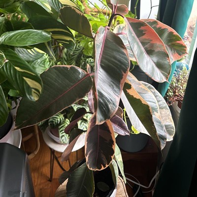 While the product arrived intact, it is not the product described. What I received was a plain Jane non-variegated Ficus Robusta, not the Ficus Robusta 'Ruby' described here. Based on the other reviews that have come in on this product in the last week, everyone is experiencing the same issue. Disappointing; the variety I received are a dime a dozen and the 'Ruby' is hard to come by. I will be returning.