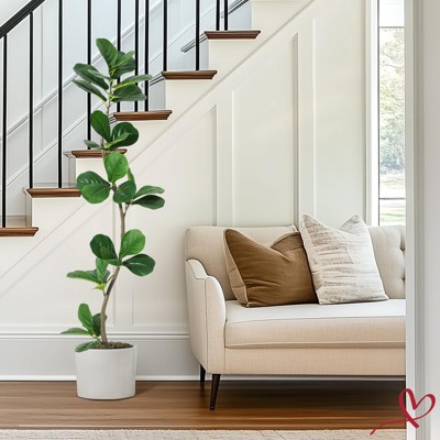 Fiddle Leaf Fig Artificial Tree with White Planter,5ft Faux Plants Indoor with Moss, Fake Rubber Tall Fake Floor Plant in Pot - Artificial Trees