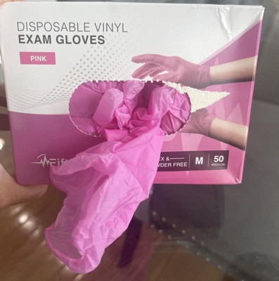 FifthPulse Disposable Vinyl Exam Gloves, Pink, Box of 50 - Powder-Free, Latex-Free, 3-Mil Thickness