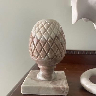 Enhance the beauty and functionality of your space with this Figural Marble Door Stopper from Threshold™ designed with Studio McGee. This egg-shaped door stopper features intricate diamond patterns with shades of brown and cream, adding a decorative accent to any room. Made from marble, this solid-weight stopper is mounted on a square base that helps keep the door securely in place.