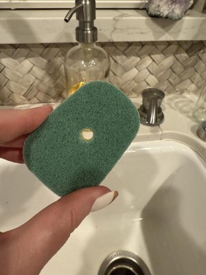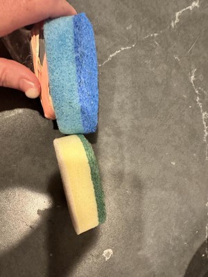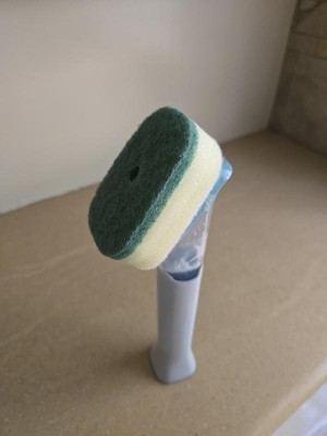These are average sponge refills. The green side is stiffer and rougher for a decent scrub. Where this loses a star is that the soap hole is straight through and fairly large so it releases a lot of dish soap which is a bit wasteful. Nothing special. Not sure I’d buy again.