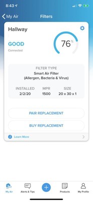 [This review was collected as part of a promotion.] The Smart Air Filter has been awesome. It lets me know the air flow thought the app and alerts me to when it needs changed. No more guessing when looking at it to see if its dirty enough to change.