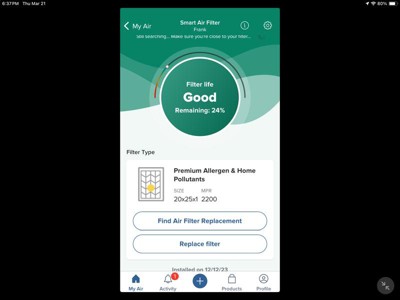Lots of difficulty connecting by Bluetooth, greatly reducing the utility. Use two filters in my system. For the same time period, the larger one claimed depletion while the smaller one claimed 34% left, but the smaller one was much dirtier. Both filters had irregular spacing of the folds, something which was not usual for the "dumb" filters. Don't know if this was a feature or a defect. Would classify this produce as potentially desirable, but more trouble than it is worth.