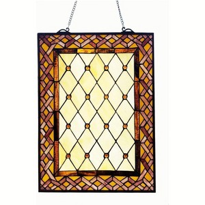 Fine Art Lighting Sunset Stained Glass Window Panel – Amber Hues, Tiffany Style Design, 18" x 24"