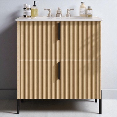 Fine Fixtures - 30" Inch Bathroom Vanity and Sink, Knob Free Design - Urbania Collection, Walnut