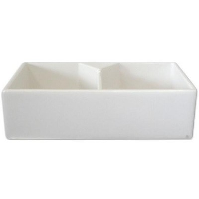 Fine Fixtures Premium White Fireclay Kitchen Sink for Home, Farmhouse Grid & Strainer Included - 33" x 18" - Double Bowl