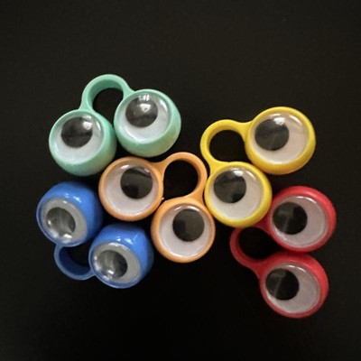 [This review was collected as part of a promotion.] This 6 pack of finger eyes are the perfect add to a party bag of any occasion. The are silly wiggle eyes that move when you move your finger. Kids can pretend to be a face or type of character and use their imaginations! They come in an assorted pack of colors and perfect size for any age. They are made of plastic and pretty sturdy. For the price and quality I would purchase again for kids party. I received an incentive to write this review.