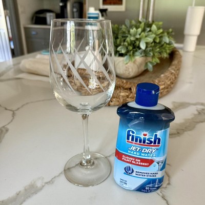 Dull or cloudy glasses? You probably have hard water. Don't settle for it anymore! Finish Jet-Dry Hard Water Rinse Aid is specifically designed to counteract the pesky minerals in hard water that can cause cloudiness and spots! Try Finish Jet Dry Hard Water to say goodbye to hardwater stains!