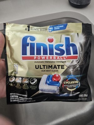 NUMBER ONE: Finish is the Number 1 Auto Dishwashing Global Brand. Based on combined unit sales of automatic dishwashing detergents, rinse aids, and other additives.ULTIMATE DISHWASHER PODS: Discover our most powerful clean yet. Finish Ultimate dishwasher tabs deliver 5X CLEANING POWER¹, making them powerful dishwasher detergent pods for sparkling dishes.POWERFUL DISHWASHER DETERGENT: These Finish dishwasher pods are engineered for tough conditions, including burnt-on stains, dried-on stains, older dishwasher models, and hard water conditions.VIRTUALLY SPOT-FREE SHINE: Unlock the power of shining, degreasing, and scrubbing to enjoy a sparkling, virtually spot-free finish on your dishes —from delicate wine glasses to sturdy stainless-steel pans—with every wash.SKIP THE RINSE: Save time and water with these dish pods, specially formulated to break down tough food residues without the need for pre-rinsing. Save up to 20 gallons of water per load by skipping the rinse step!EFFORTLESS USE: Finish dishwashing pods dissolve easily, require no pre-measuring, and come in resealable packaging to help keep moisture out.CYCLESYNC TECHNOLOGY: Our innovative CycleSync Technology releases the right ingredient at the right time* to deliver great results.FINISH YOUR CLEAN: Shop our range of dishwasher supplies, including Jet Dry rinse aid, dishwasher liquid cleaner, and dishwasher tablet cleaners. Start with Finish dishwasher products today!*Enzyme 1 vs. Finish Power Based on Cleaning Ingredients"