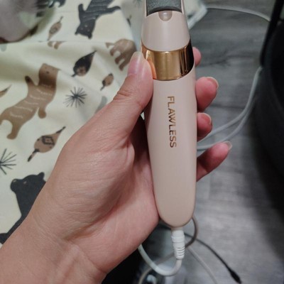 - Flawless Pedi comes with 1 handle, 2 roller heads and a USB charging cord that works with any wall adapter (wall adapter not included.). Power Source: Battery