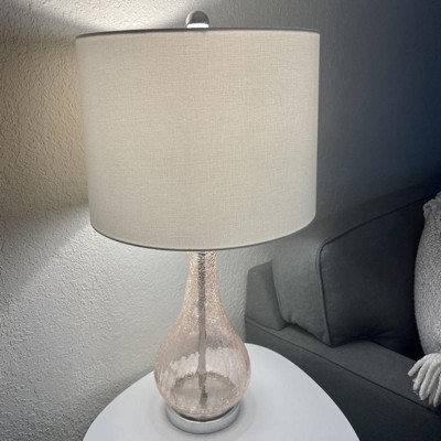 This lamp is a beautiful blush pink and the crackle is a nice addition. I also like that since the cord runs through the middle that they covered it in chrome instead of leaving the cord exposed as many lamps do. It is quite sturdy and bright for its size.