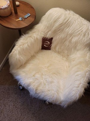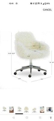 The contemporary Fiona Office Chair adds a touch of fun and style to any workspace. This unique fully upholstered frame features plush faux fur in soft white. Completed with a chrome base and rolling casters that allow for easy movement around your workspace. The adjustable-height seat allows the chair to work with a variety of table heights. Perfect for a teenager's desk, dorm room, or any office in need of a glamorous element.