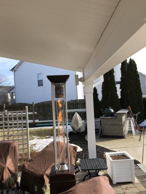 Bought this heater because we wanted a Flame heater for the patio. What a great Purchase! The adjustable flame works great and the heat it emits is good.