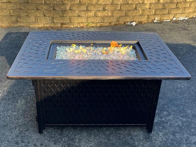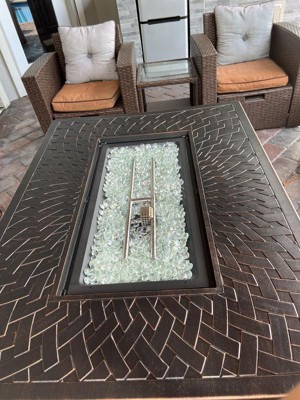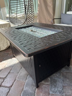 Fire Sense 63224 Dalton Woven Aluminum Gas Fire Pit Table 55000 BTU Outdoor Multi-Functional with Fire Bowl Lid & Clear Fire Glass, Bronze, Square