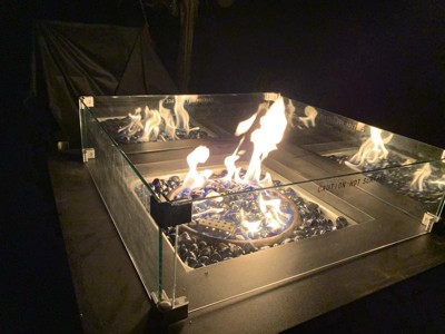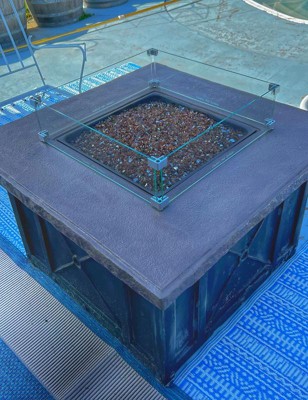 - TEMPERED GLASS WIND GUARD FOR SQUARE GAS FIRE PIT: Made from strong tempered glass, our wind guards allow the flame of your fire pit to burn steady and tall even in a breeze, without detracting from the warmth and visual appeal of an open fire. The fire pit screen measures 22.5” x 22.5” x 6.25”