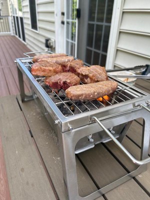 [This review was collected as part of a promotion.] The Stainless Steel Foldaway Charcoal Grill offers a practical and stylish grilling solution for outdoor enthusiasts. Its stainless steel construction ensures durability and resistance to rust, while the foldaway design makes it easy to transport and store. The grill provides even heat distribution and a spacious cooking surface, which is ideal for cooking a variety of foods. However, it may be slightly heavier than other portable options and can require more frequent cleaning to maintain its sleek appearance. Overall, it's a solid choice for those seeking a reliable and portable charcoal grill.