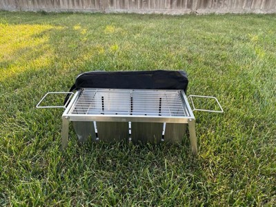 [This review was collected as part of a promotion.] This little stainless steel 18-inch high portable grill is great to take out to the lake, on a picnic or tailgating. Actually its portability is endless because it is foldable and comes with a carrying/storage bag. It is easy to cleanup. Just dump and go. Fold it up after it cools down and store it for the next time! Super simple and quick!
