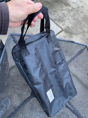 Was excited to get this stainless steel collapsable grill since my friends and I like to tailgate after a hard bike ride on the trails and celebrate with a nice meal. This foldaway grill is ultra portable and comes with its own carry bag that is about 18"L x 10"W x 1"D and weighs about 7 pounds. It feels sturdy and stable with little to go wrong The grill itself has sturdy foldout legs, handles that easily inset into place and complete setup only takes a few seconds. I sprayed the grate with some cooking oil before placing the meat and veggies for easy clean up after cooking. My only gripe is the grate opening is a bit large so some food items can fall through, would have liked a mesh screen to prevent smaller items from falling into the charcoal. A mesh screen type grate would be make this grill perfect.