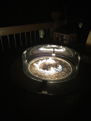 We recently bought this wind guard for our round fire table. It works well and has the added feature of dramatically adding to beauty of the experience. It was easy to assemble.