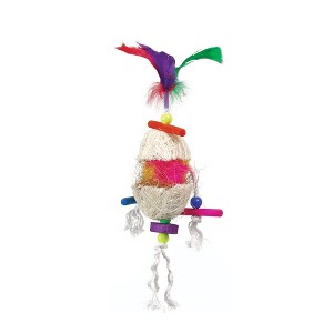 Prevue Pet Products Tropical Teasers Fireball Bird Toy 62503 satisfies natural nest building urges while providing great beak exercise. 100% natural, dehydrated, sterilized coconut fibers to satisfy plucking, preening, nesting and foraging instincts. Tropical Teasers bird toys may include additional materials, such as colorful wooden shapes, feathers, rope and 100% pet safe, non-toxic plastic beads for beak and tongue exercise. Toy connects easily to cage with quick-link attachment and can be replenished with fibers to extend the life of your toy. Toy is hand made and actual measurements may vary slightly. As always, supervise birds at play. Our Fireball 62503 bird toy is approximately 3" wide and 11" long, ideal for small to medium sized birds.