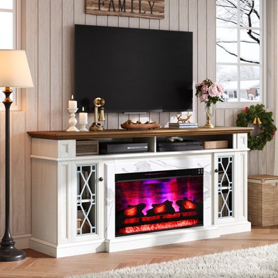 • TV Console Dimension: 80.3"W x 14.4"D x 22.8"H. 80 inches television stand for flat or curved screen TV up to 90".. Fireplace Dimension: 40"W x 5" D x 14"H, can work with or without heat