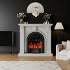 A: Yes it does but because of the shape of the birdcage and the angle that the heater is in, you kind of have to get somewhat low when using it. You can change the “flame” settings, the heat and temp, the timer, and of course on and off.