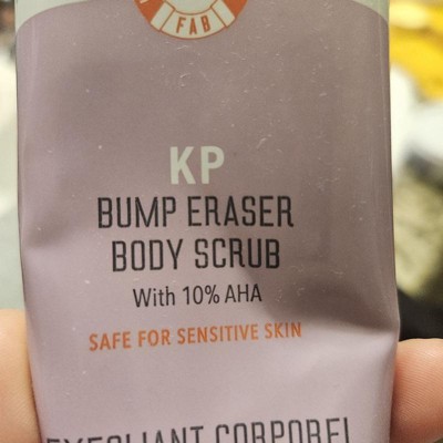 - Exfoliate using KP Bump Eraser Body Scrub with 10% AHA