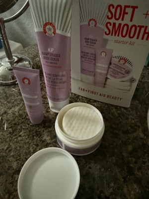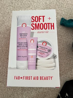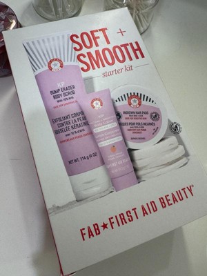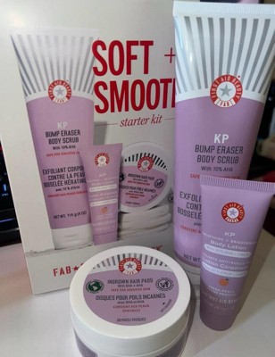 [This review was collected as part of a promotion.] The First Aid Beauty Soft & Smooth Starter Kit is such a great find! The KP Bump Eraser Body Scrub works incredibly well—my skin feels smoother almost immediately. The Smoothing & Brightening Body Lotion is lightweight but still super effective, leaving my skin soft and glowing without irritation. The Ingrown Hair Pads are a game changer, especially for preventing bumps after shaving. After using the full set, my skin feels noticeably smoother, clearer, and more even. Such a perfect starter kit for anyone dealing with KP or texture!