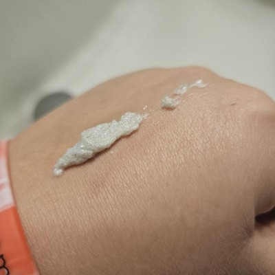 [This review was collected as part of a promotion.] The scrub feels like sandy once you rub it in. It doesn't smell the greatest and i wish it had more of a fruity smell. The ingrown hair pads didn't burn at all and was just a bit wet, so i squeezed out some excess liquid