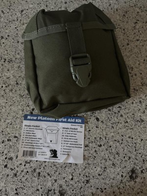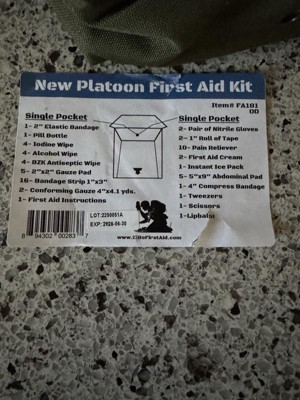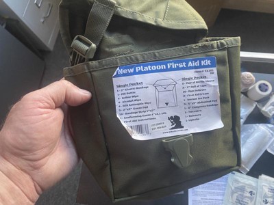 [This review was collected as part of a promotion.] This Platoon First Aid Kit is of very nice quality. The pouch is made from sturdy nylon similar to a modular lightweight load carrying equipment (MOLLE) configuration. There are sturdy snap straps on the back for easy carry. The first aid products inside this kit are hermetically sealed and sterilized for immediate emergency wound care. The kit has plenty of bandages, gauze pads, a pair of tweezers, scissors, a tube of lip balm, first aid cream, and even an instant ice pack. This kit is perfect to bring on any excursion because it is lightweight and has everything I might need for wound care, including nitrile gloves. I definitely feel much more confident and prepared with this high quality first aid kit on my person.