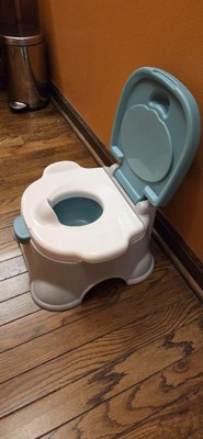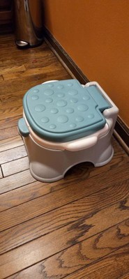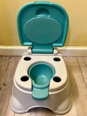[This review was collected as part of a promotion.] I use this potty for my toddler and it works pretty good. It has three things in one. First it is a little potty chair and my kid likes sitting on it because it is small and not scary. Then you can take the seat off and put it on the big toilet. That helps a lot when they start trying the real toilet. The bottom part can be a step stool too. My child uses it to reach the sink. Cleaning it is not hard. The bowl comes out and I can wash it fast. The splash guard helps with the mess. It does not move around so my toddler sits on it fine. I think it is a good potty for the price. It is simple and it works. If you want something easy for potty training this one is nice.