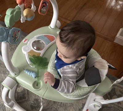Fisher-Price Baby Bouncer SpaceSaver Jumperoo Activity Center with Lights Sounds and Folding Frame, Puppy Perfection